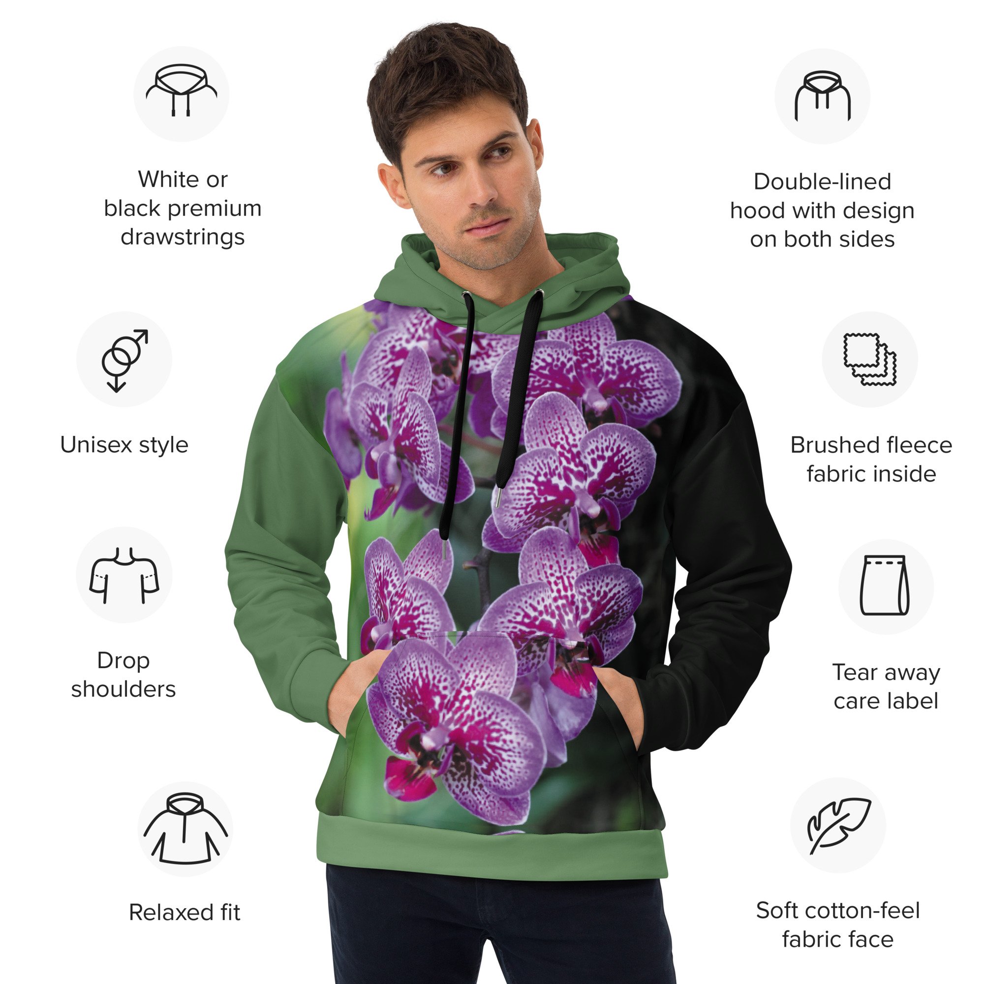 Shop › "Magenta Orchids" Pull Over Photo Hoodie