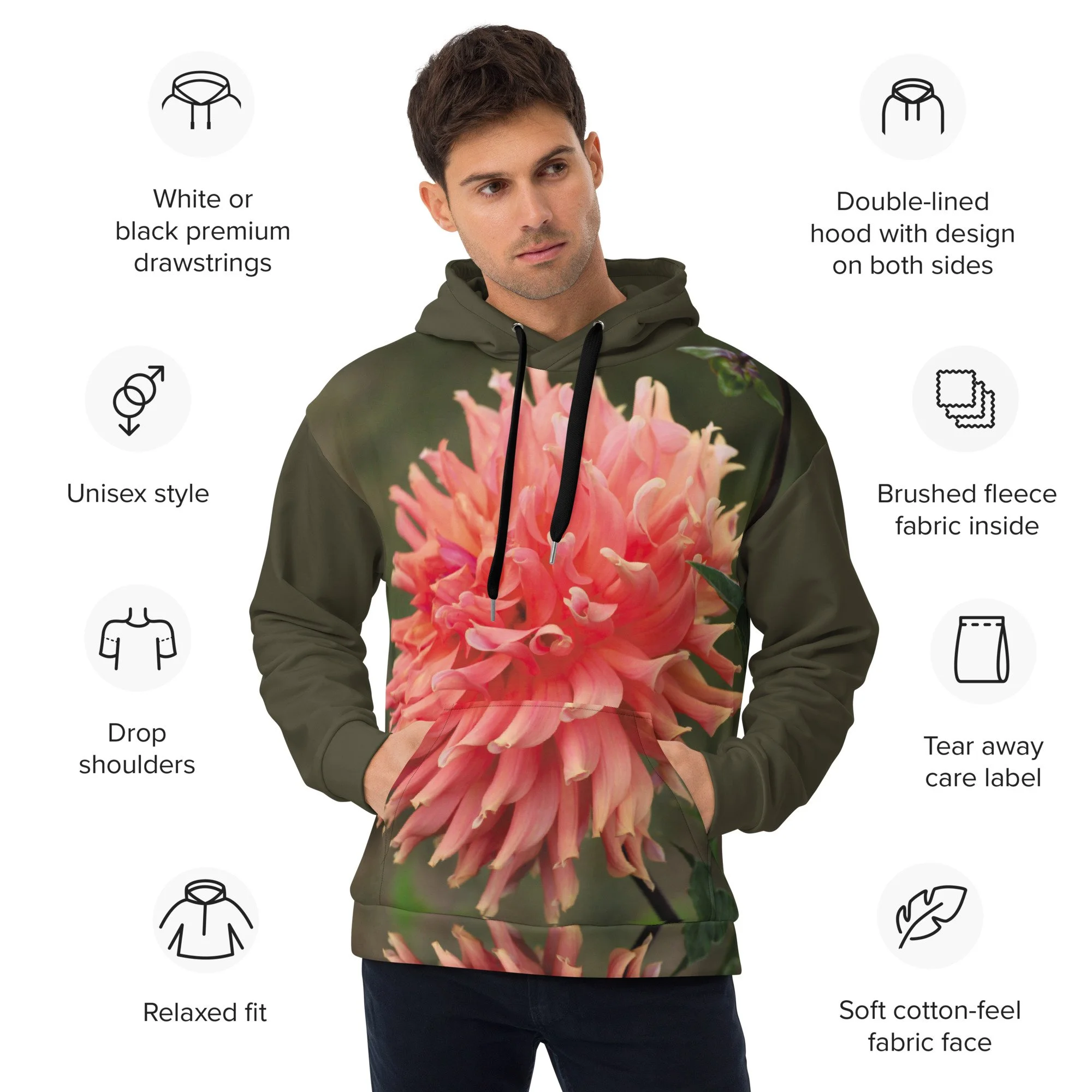 Shop › "Peachy Keen Dahlia" Pull Over Photo Hoodie