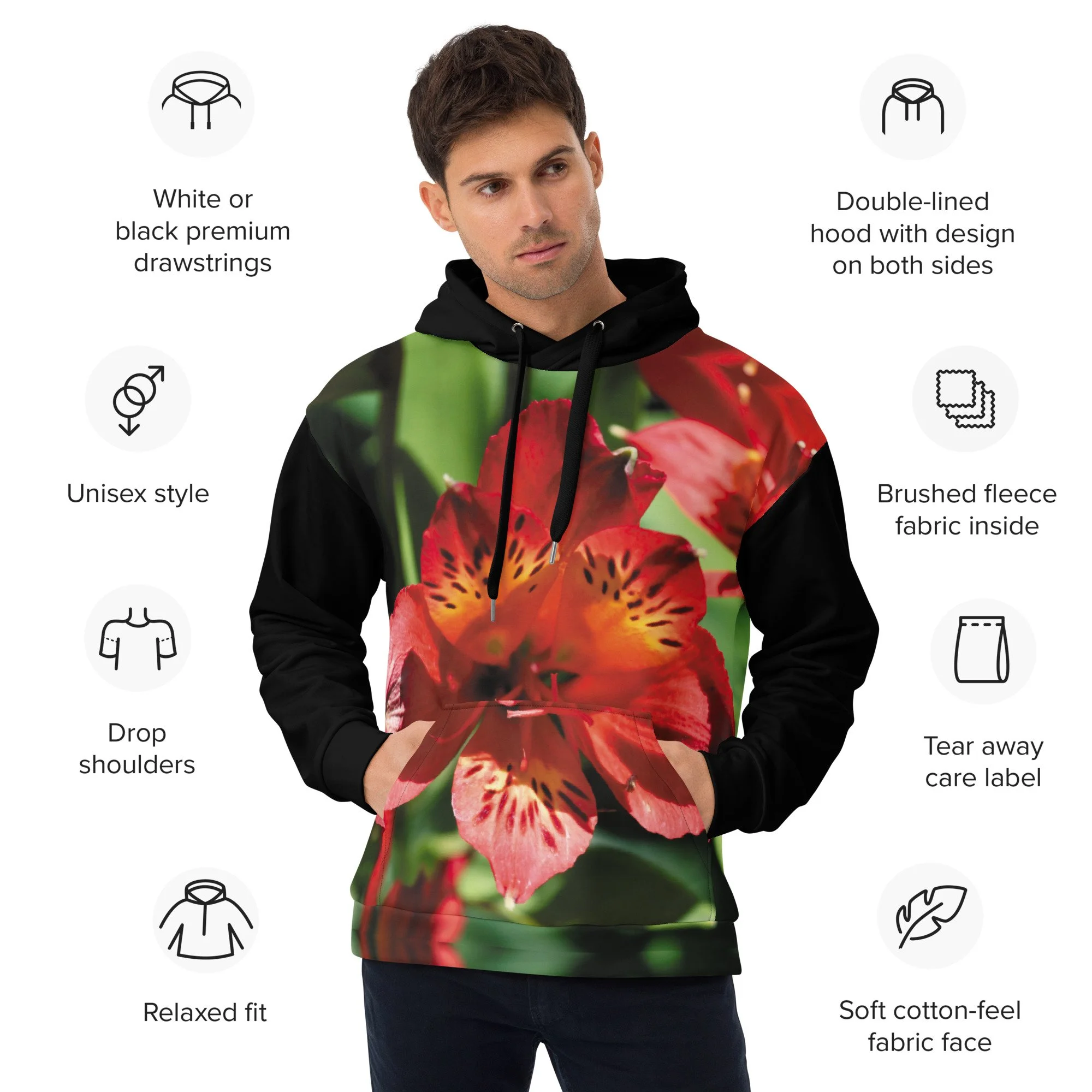 Shop › "Red Peruvian Lily" Pull Over Photo Hoodie