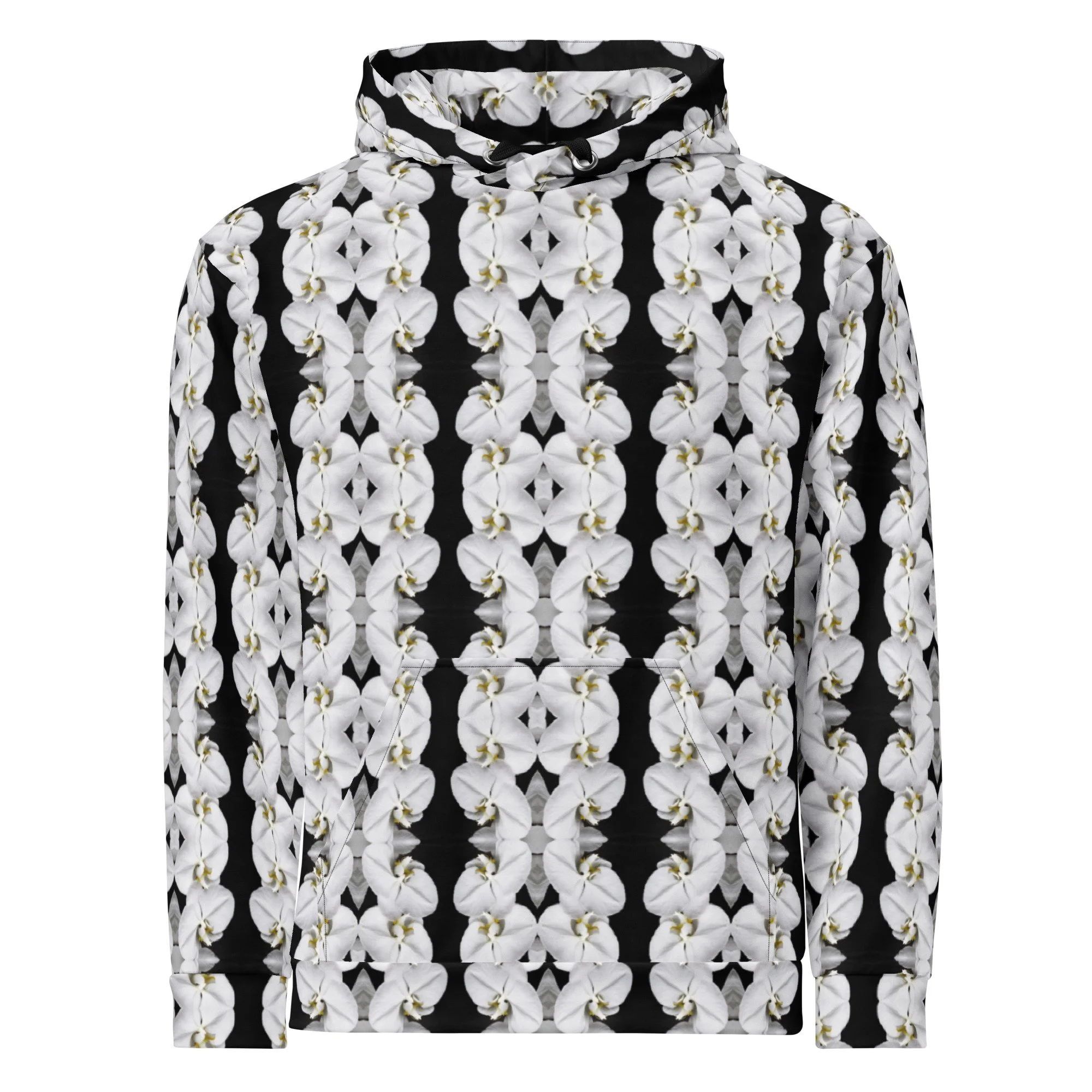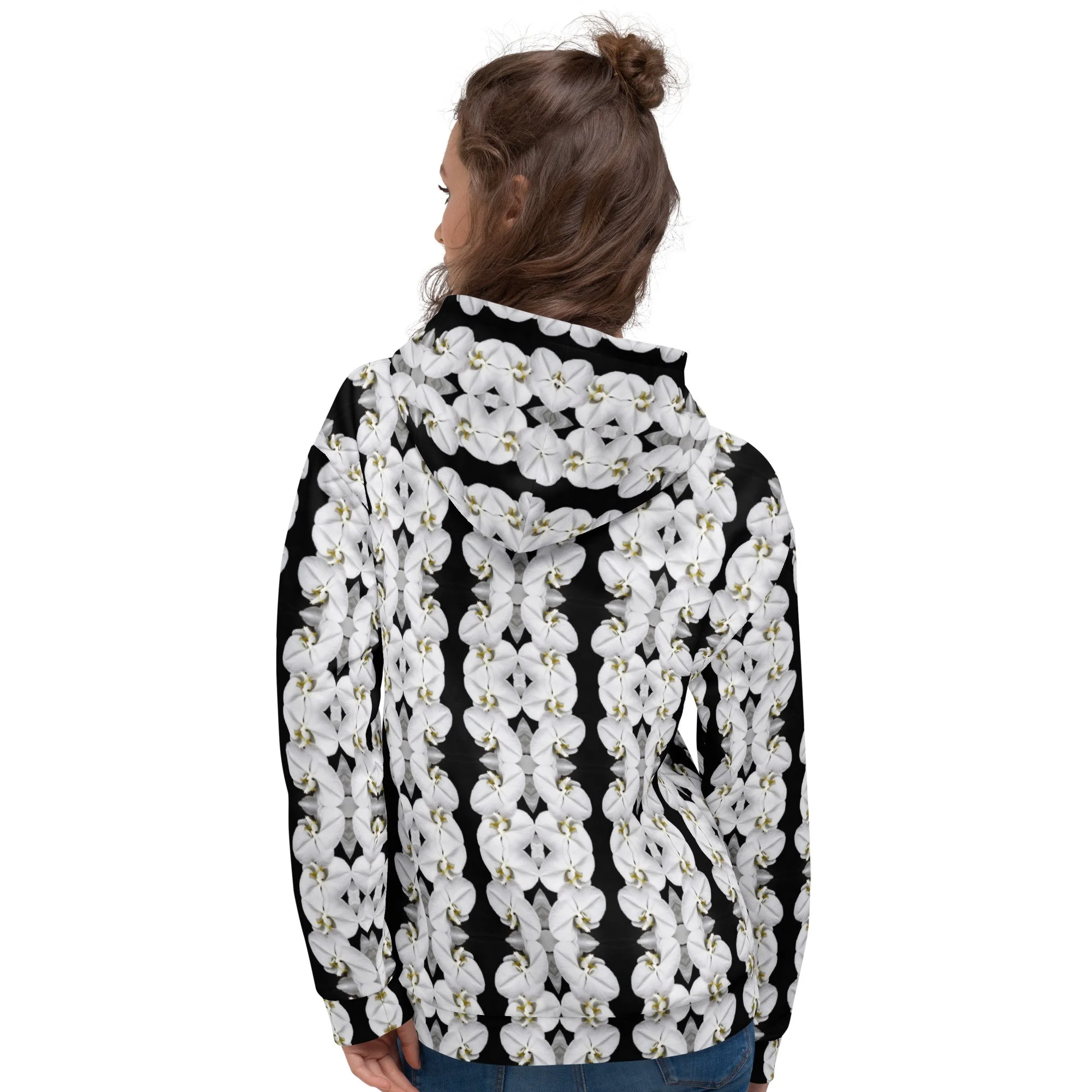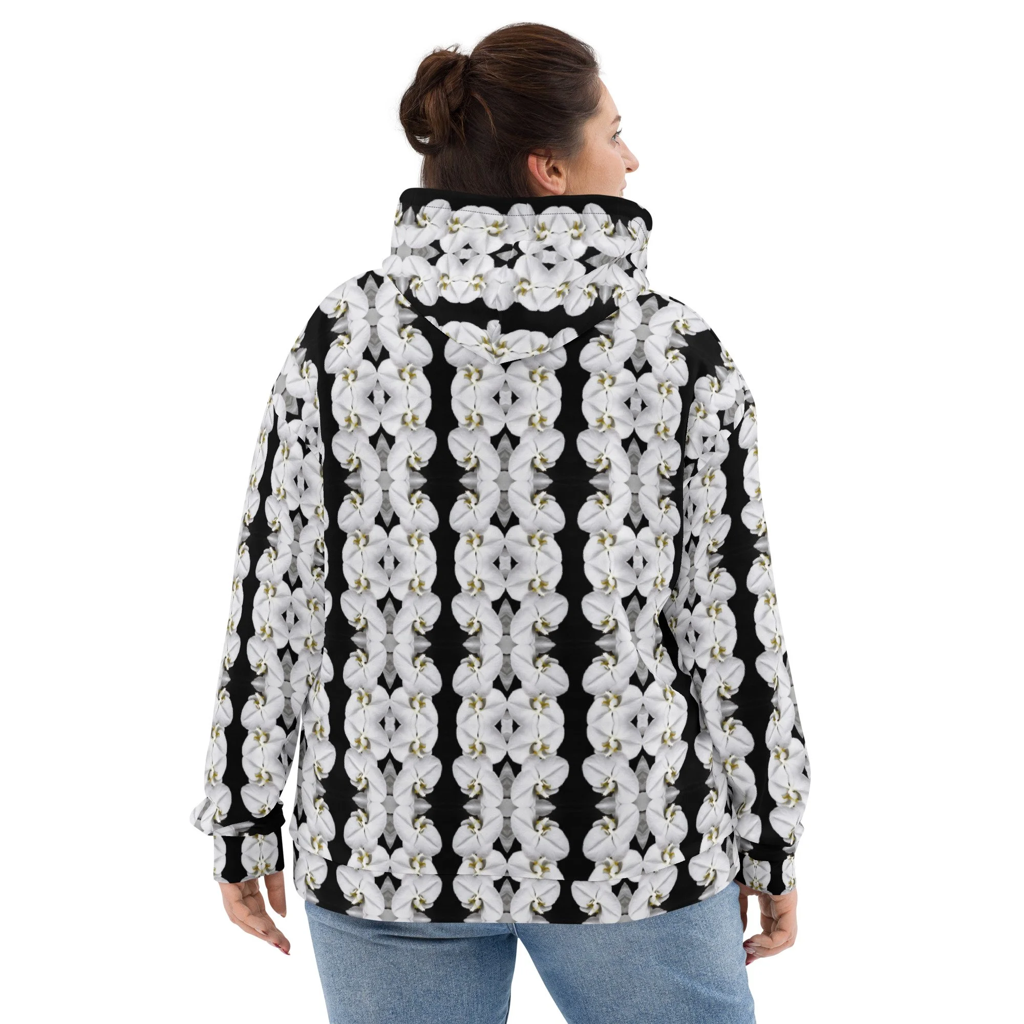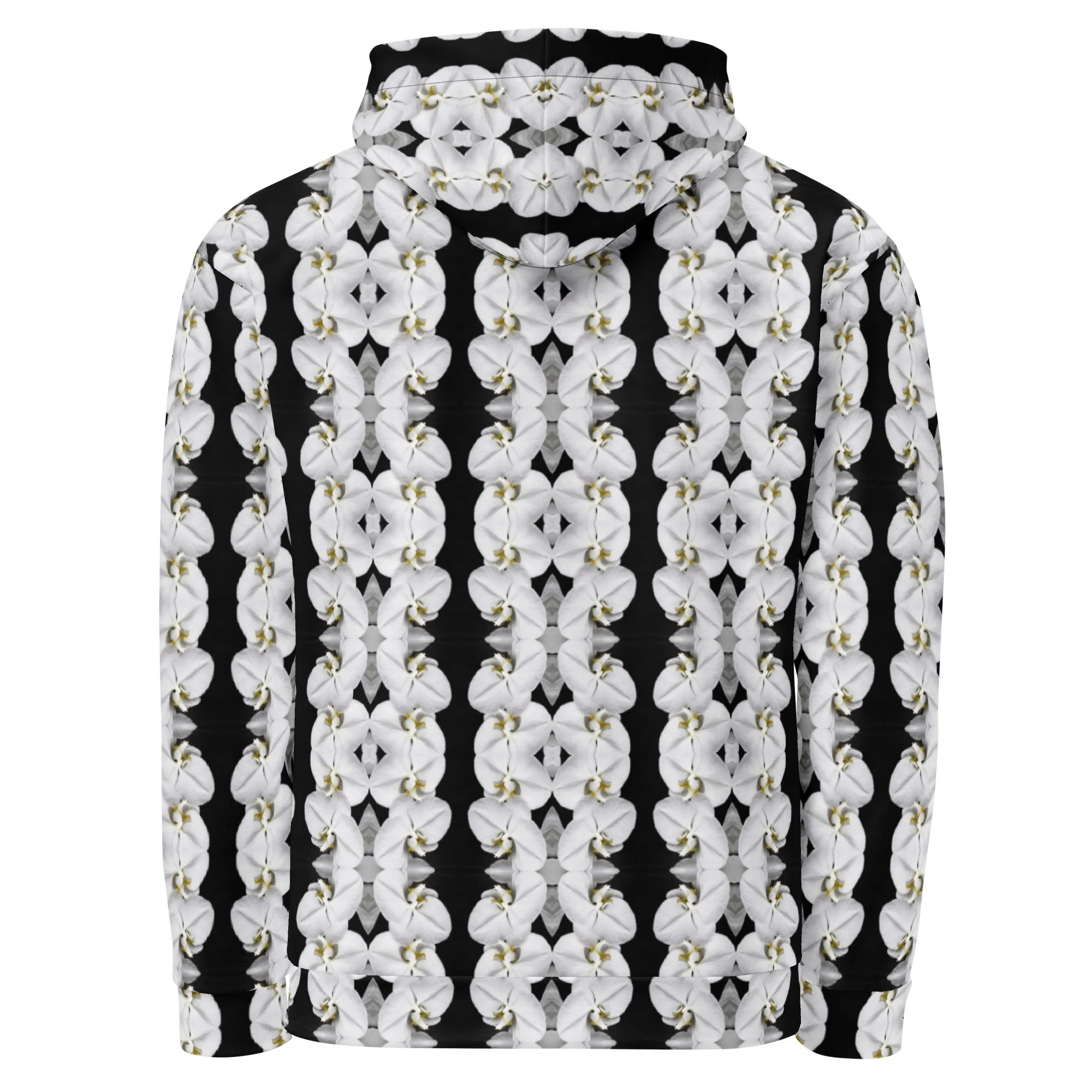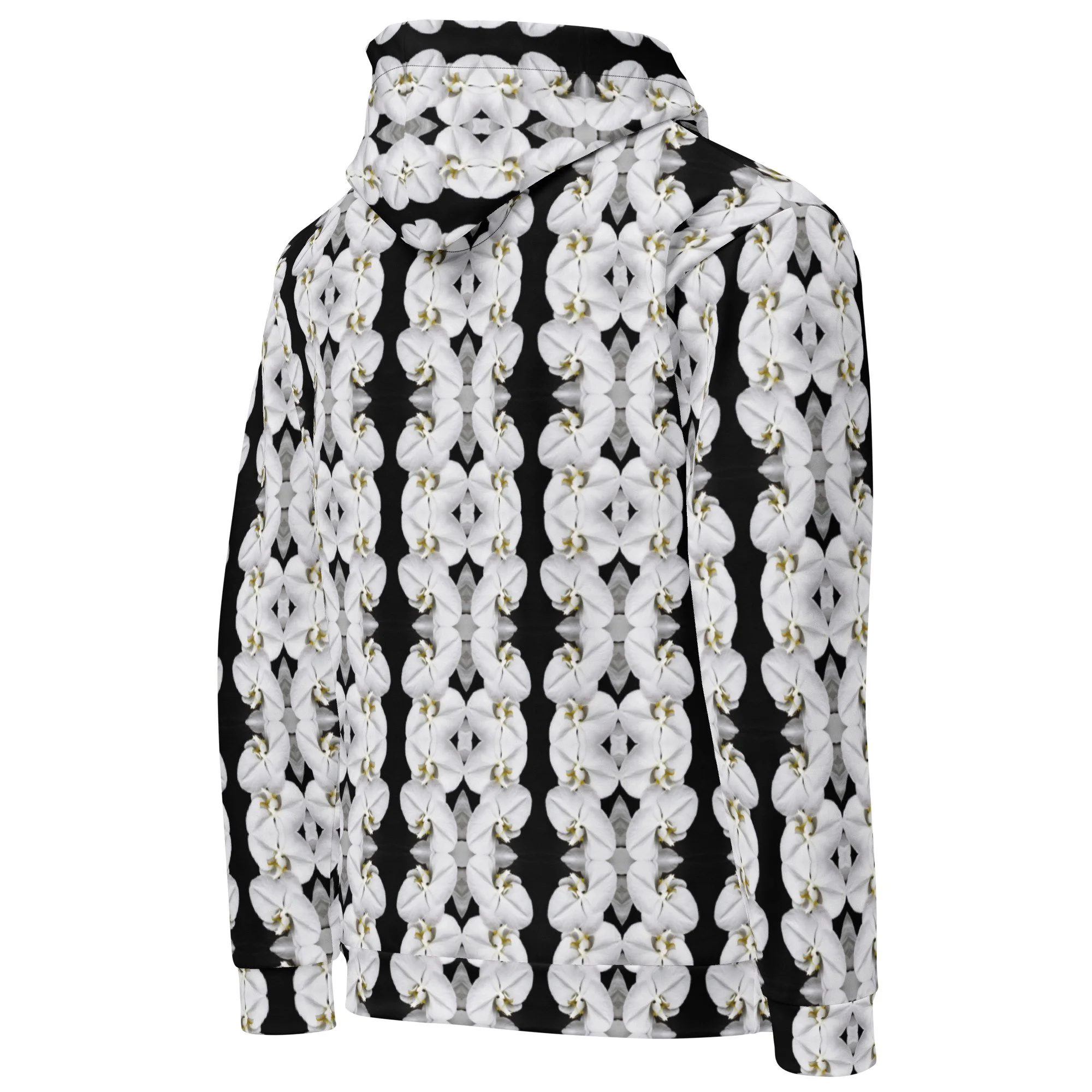 "White Moth Orchids Patterned" Pull Over Photo Hoodie