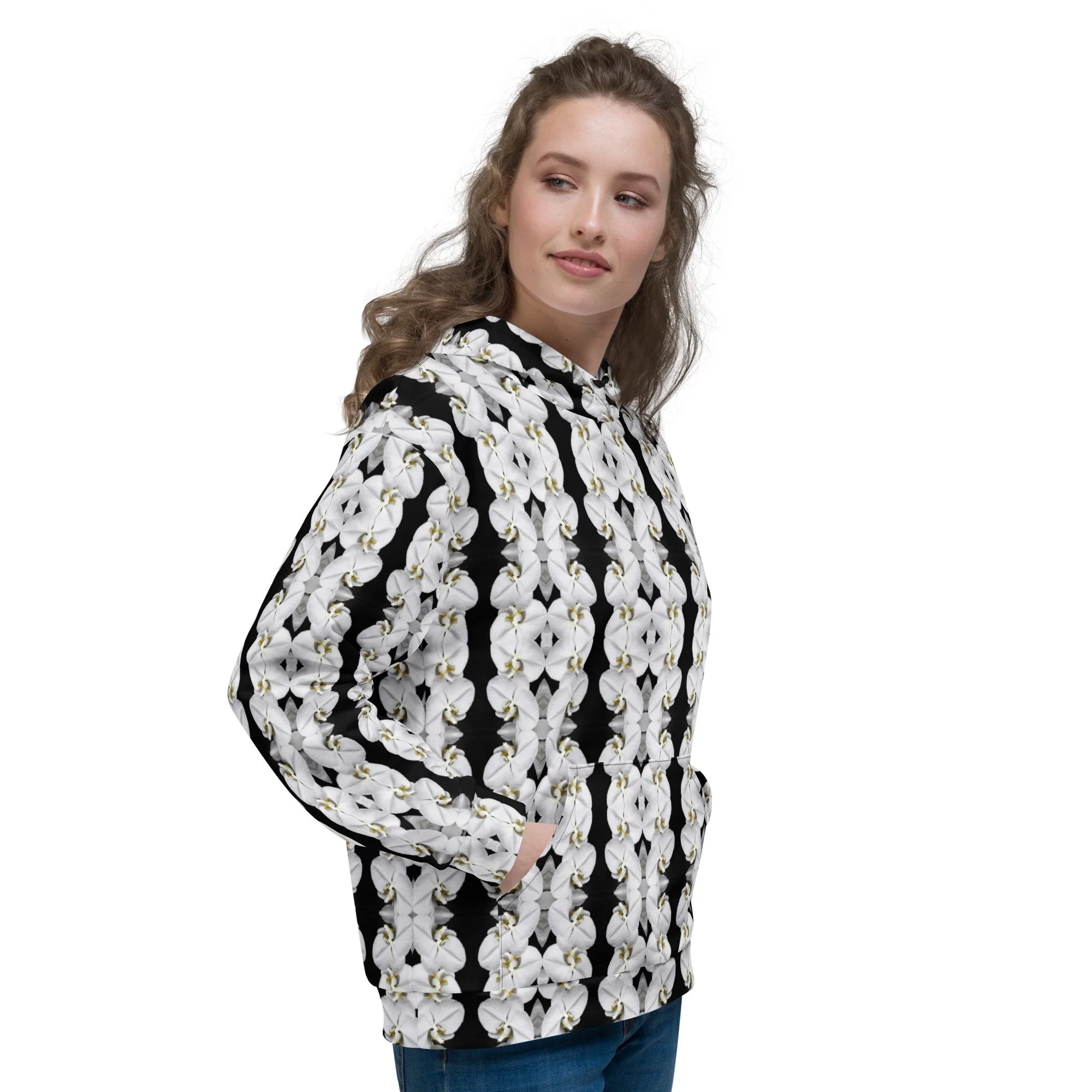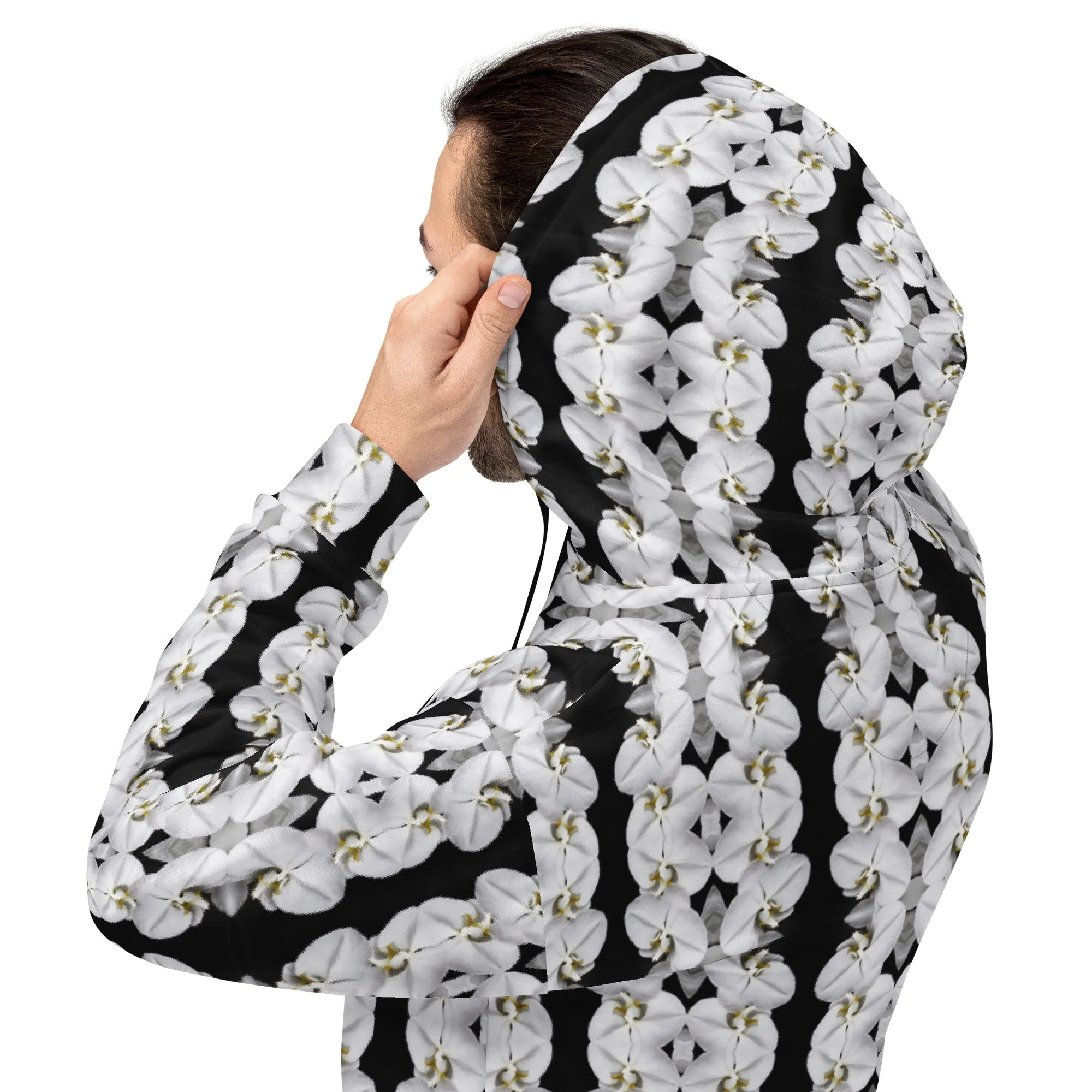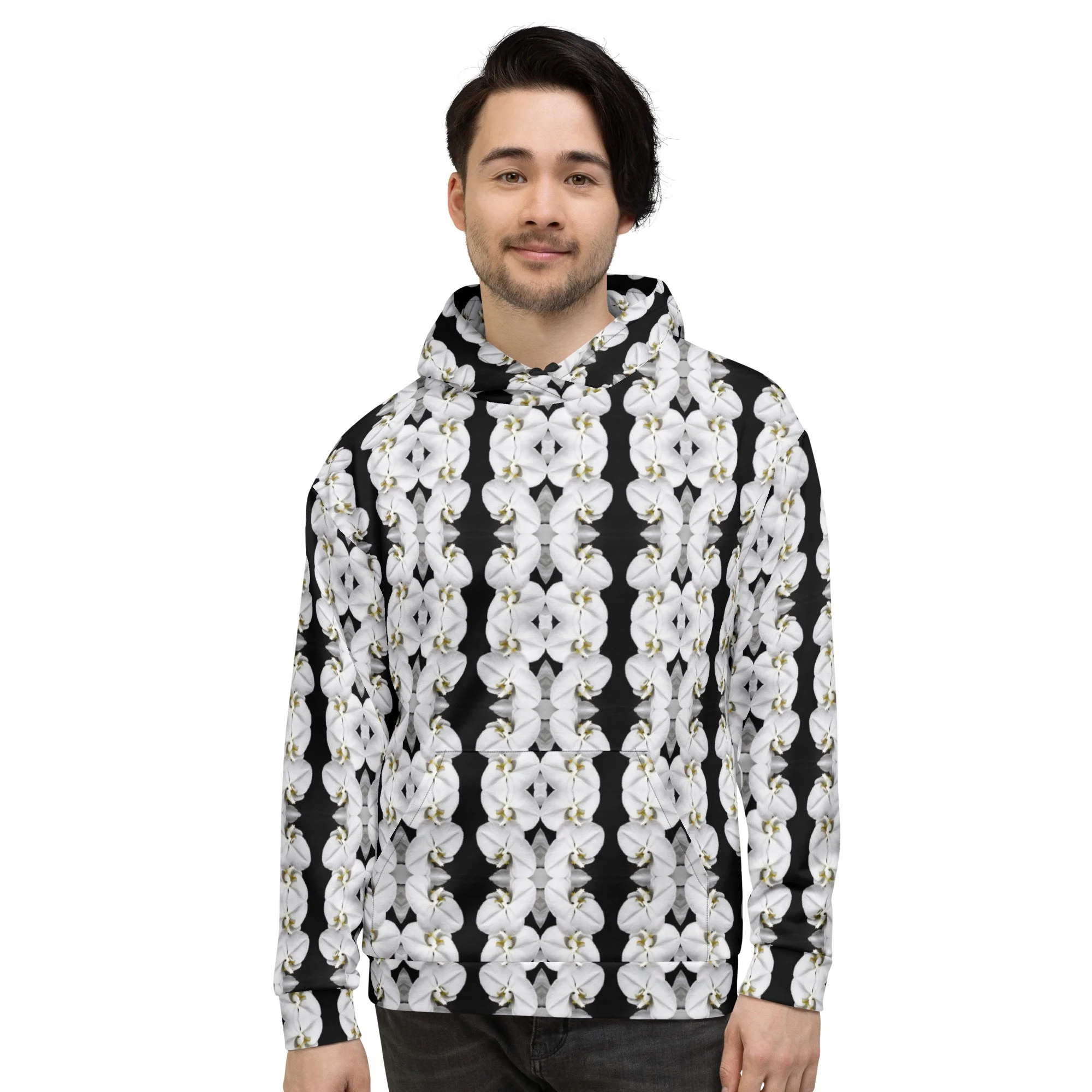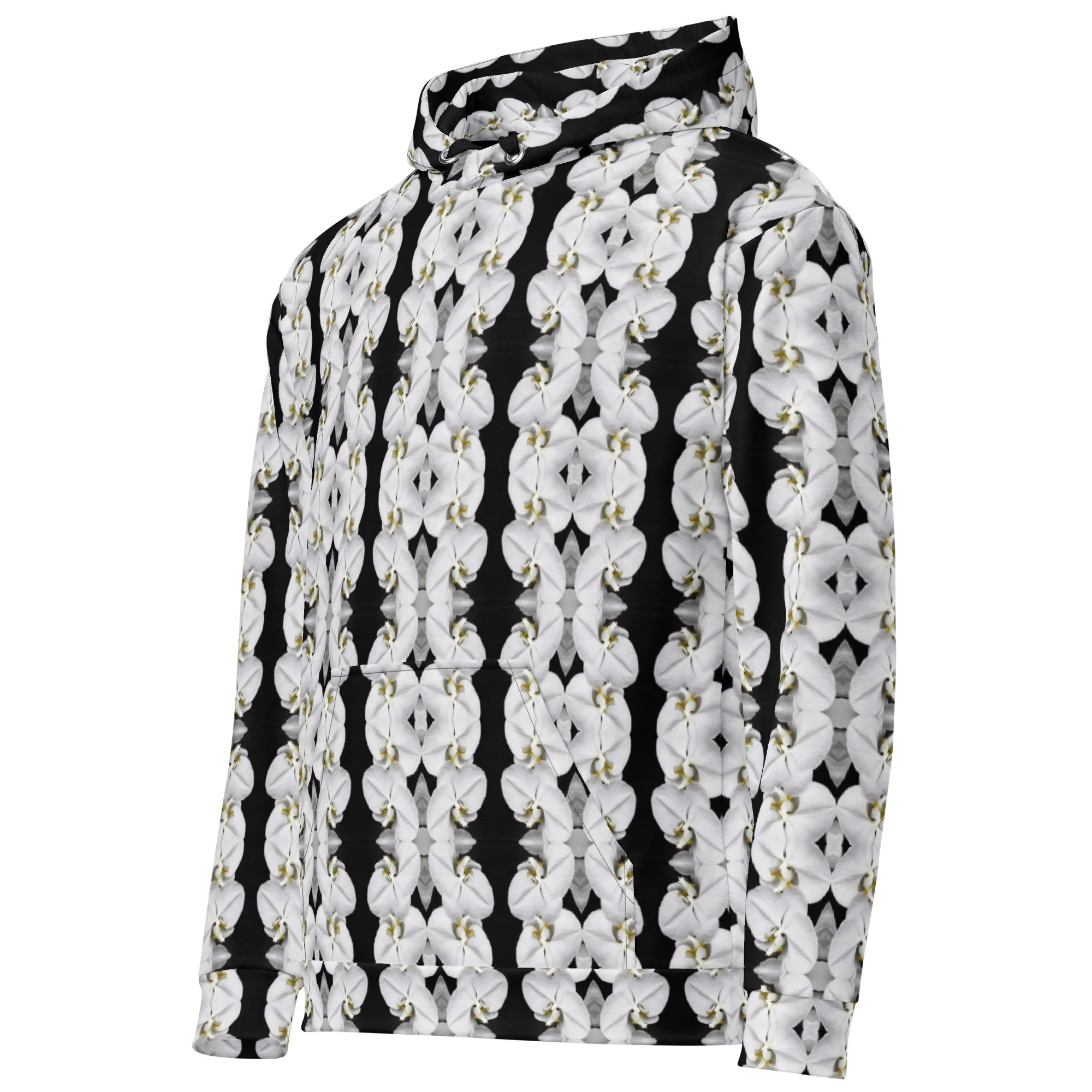 "White Moth Orchids Patterned" Pull Over Photo Hoodie