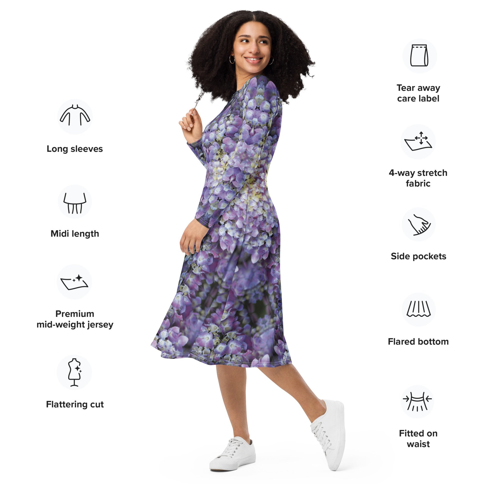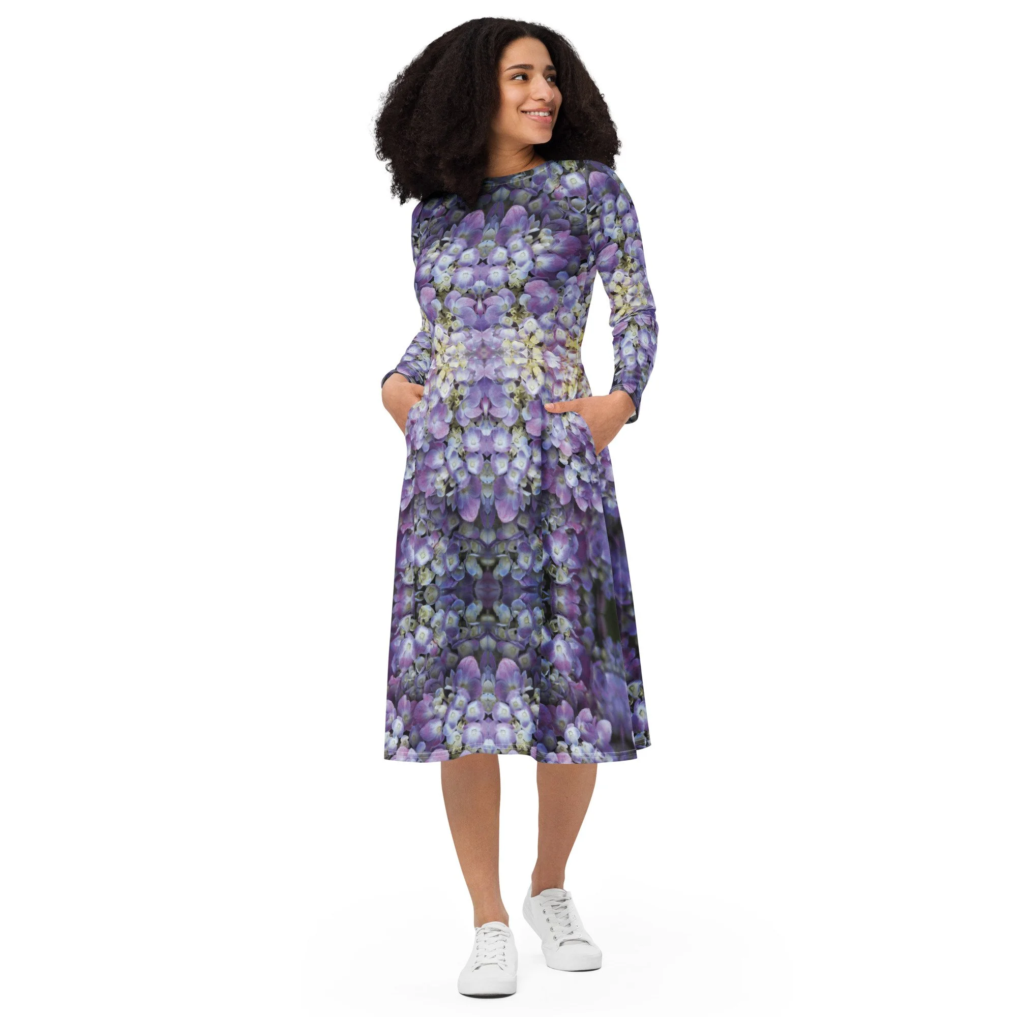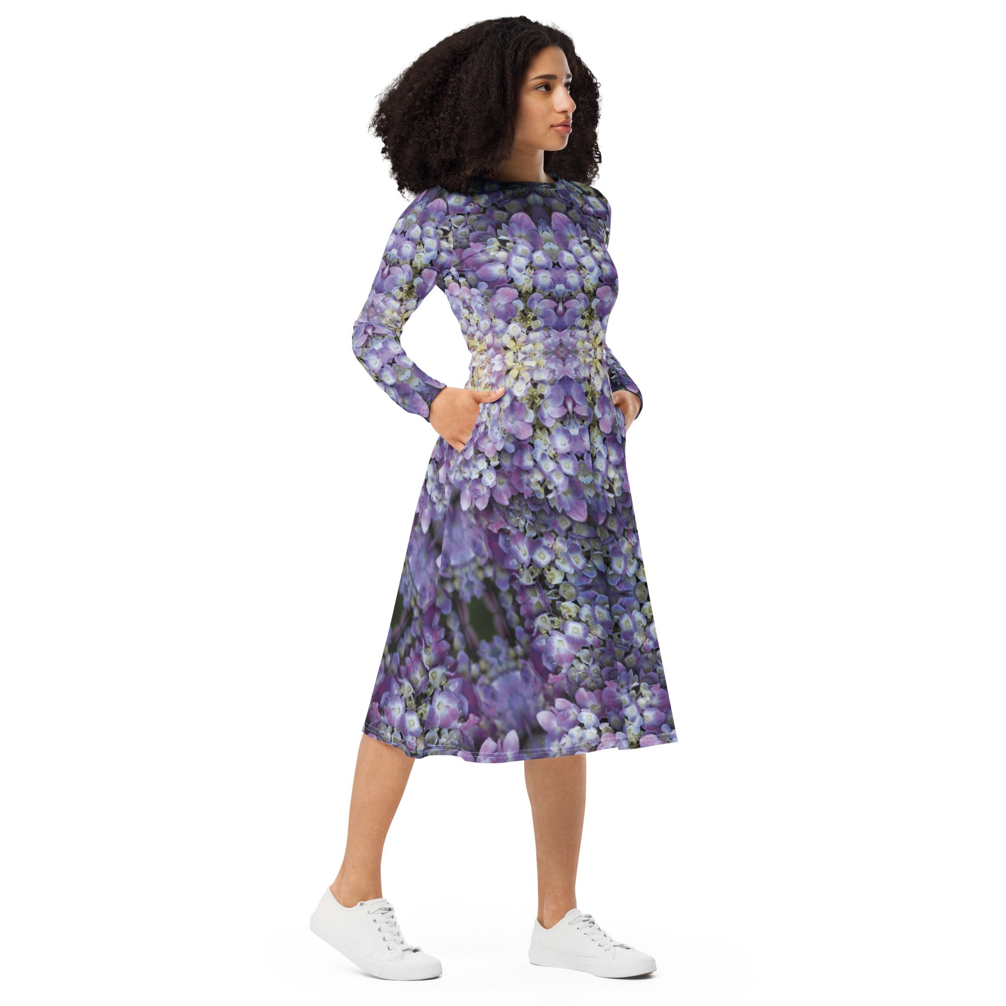 The prints and photography you love are now on long sleeve dresses. Its soft fabric and flattering cut will ensure you feel comfortable all day. The fitted waist and flared bottom flatters everyone. The best part about these dresses? POCKETS!