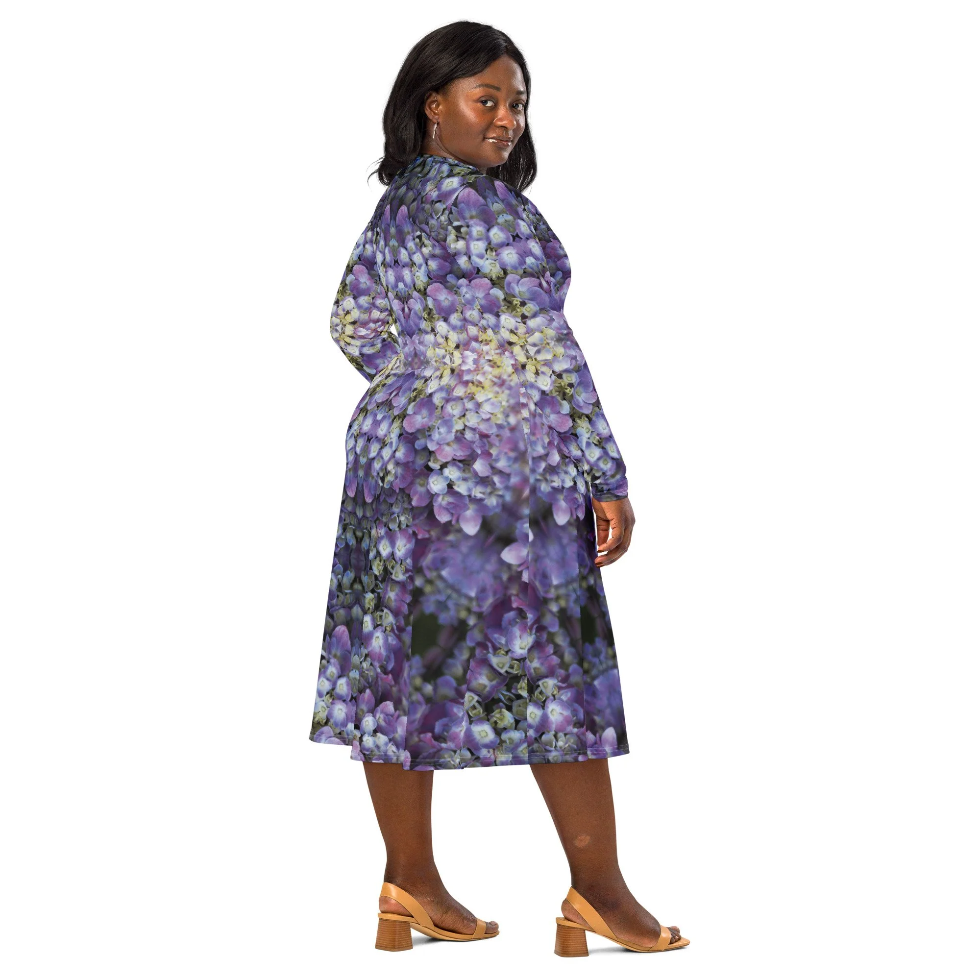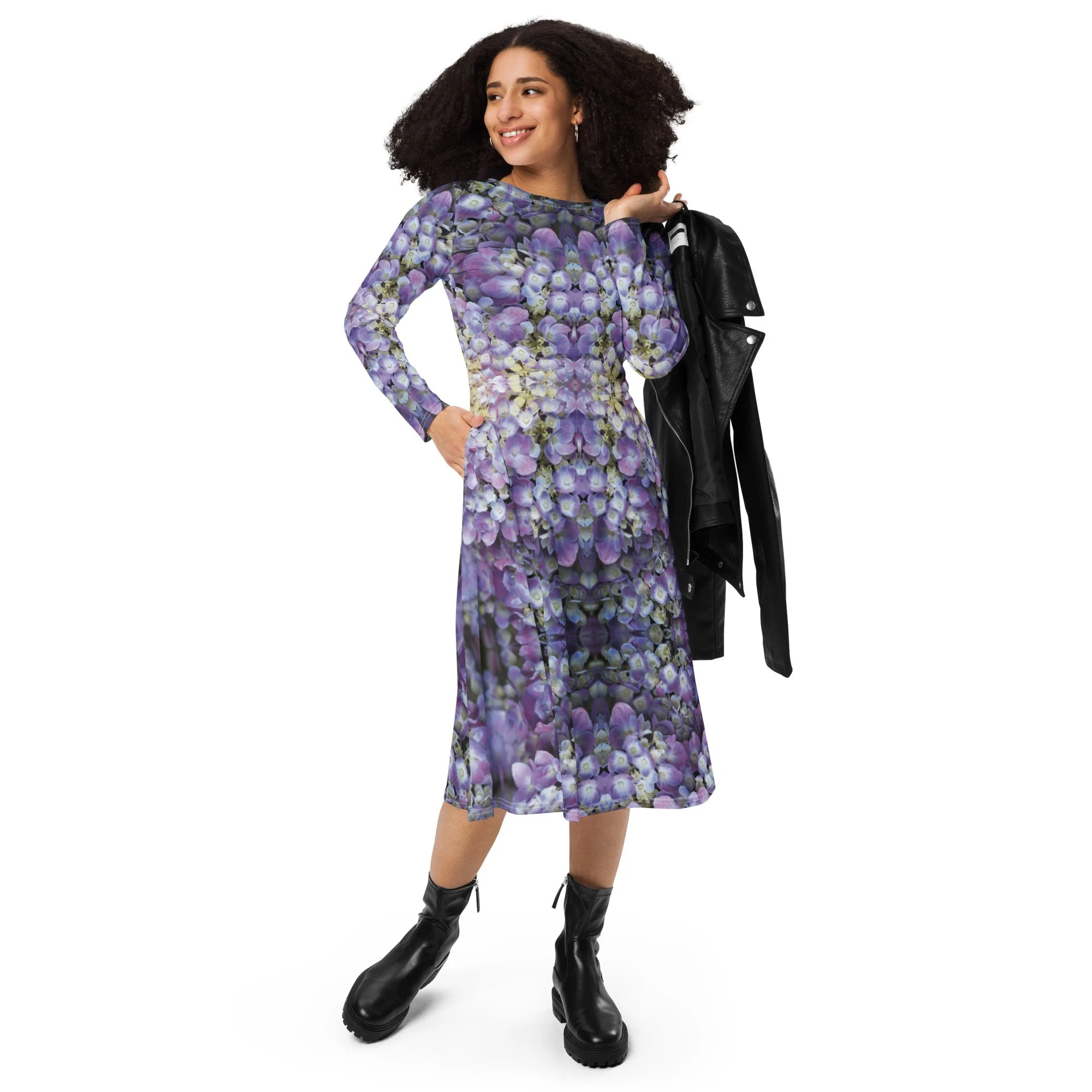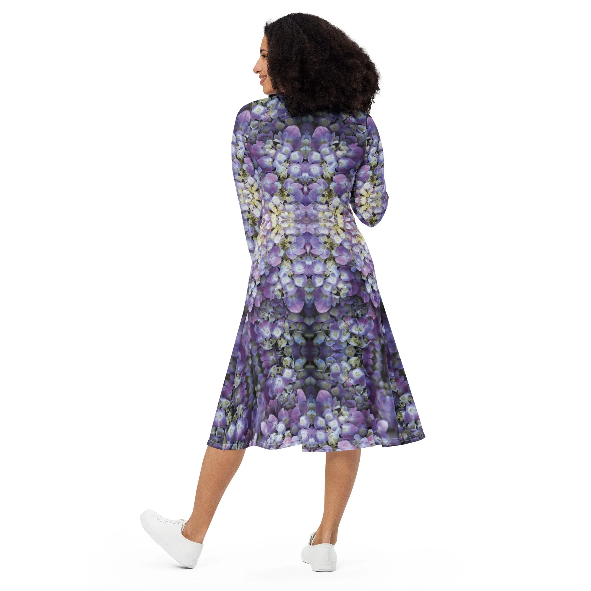 "Perfectly Balanced Purple Reflected" Long Sleeve Midi Dress