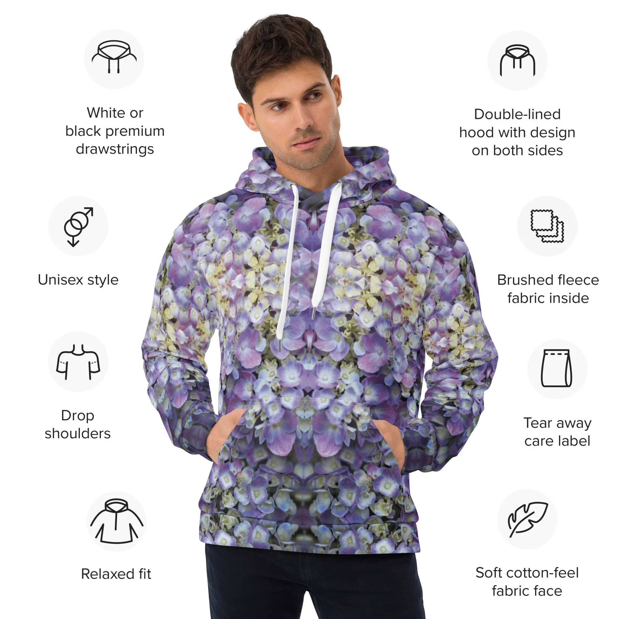 This comfy hoodie has a smooth, soft outside with a vibrant photo print and an even softer brushed fleece inside. With a relaxed fit, it’s perfect for layering.